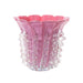 Vaso de decoração em murano, modelo Pierre, cor rosa candy. Este modelo é uma opção de vaso para arranjos menores. Possui as bordas onduladas e detalhes transparentes em toda a parte externa.
